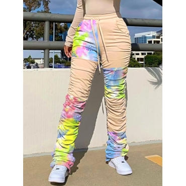 Lovely Paisley Tie-dye Casual Tie-dye Drawstring Fold Design Light Camel Pants