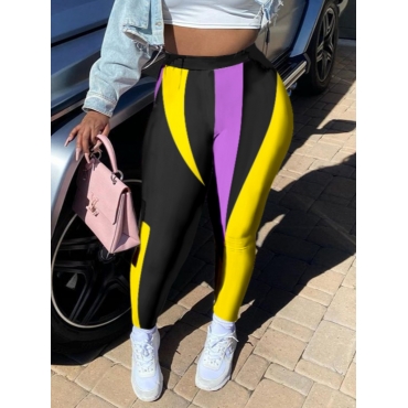 Lovely Contrast Color Leisure Color-lump Patchwork Multicolor Pants