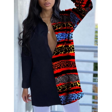 Lovely Casual Leopard Print Patchwork Black Blouse(No-positioning Printing)