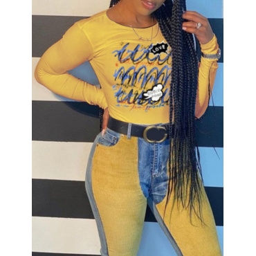 Lovely Graffiti Series Casual Graffiti Print Color-lump Patchwork Yellow T-shirt