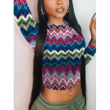 Lovely Chic O Neck Geometric Print Multicolor T-shirt
