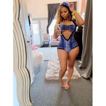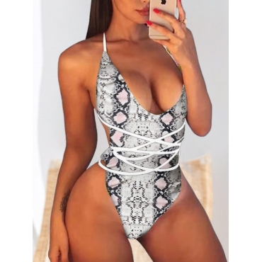 Lovely Sexy Snake Print Hollow-out White One-piece Swimsuit