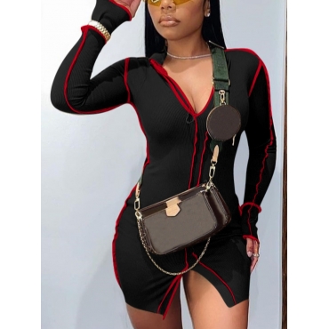 Lovely Chic Flared Striped Front Slit Black Mini Dress