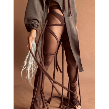 Lovely Stylish Strap See-through Coffee Pants