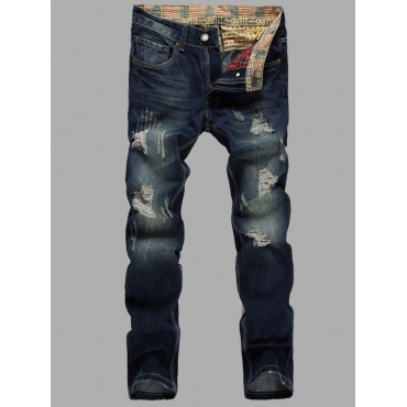 Lovely Casual Broken Holes Tie-dye Blue Men Jeans