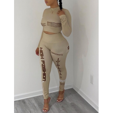 Lovely Chic Half A Turtleneck Letter Print Apricot Two Piece Pants Set