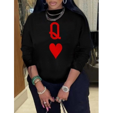 Lovely Casual Heart-shaped Letter Print Black Hoodie