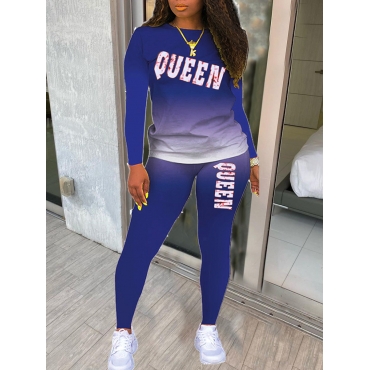 Lovely Casual Gradient Letter Print Blue Two Piece Pants Set