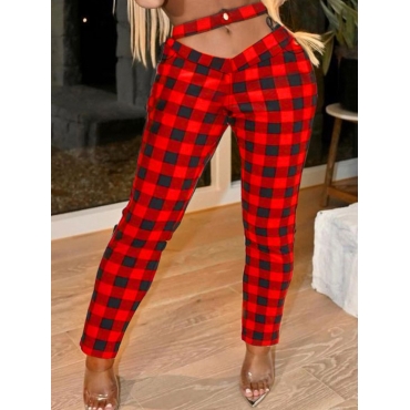 Lovely Sweet Plaid Print Lace-up Red And Black Pants