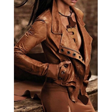Lovely Street Turndown Collar Button Design Brown Leather
