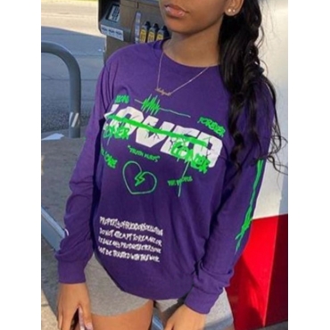 Lovely Casual Letter Print Patchwork Purple T-shirt