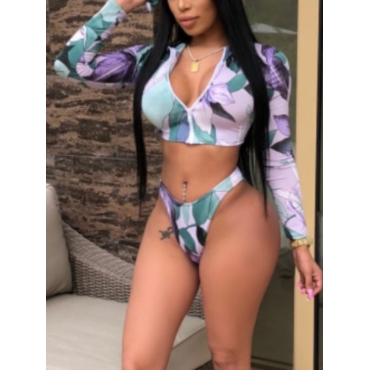 Lovely Casual Zipper Design Patchwork Purple Tankini(Without Scarf)