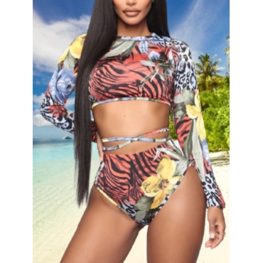 Lovely Sexy Floral Print Patchwork Red Tankini