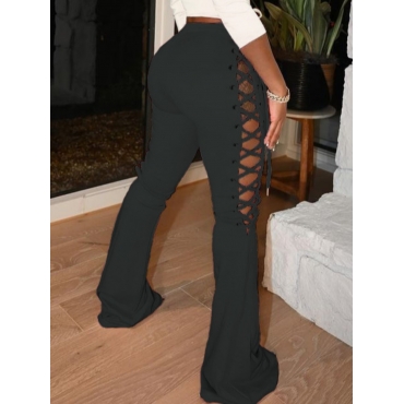 Lovely Chic Flared Bandage Hollow-out Design Black Pants