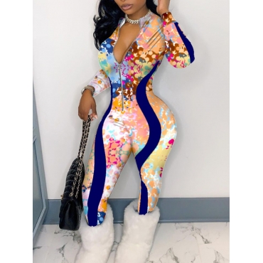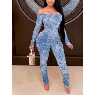 Lovely Casual Off The Shoulder Tie-dye Blue One-piece Jumpsuit