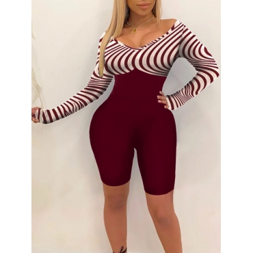Lovely Sexy U Neck Striped Patchwork Dull Red One-piece Romper