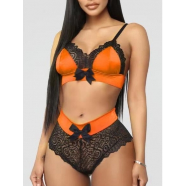 Lovely Sexy Bow-tie Decoration Patchwork Orange Yellow Bra Sets