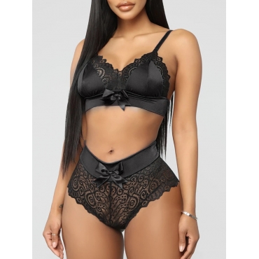 Lovely Sexy Bow-tie Decoration Patchwork Black Bra Sets