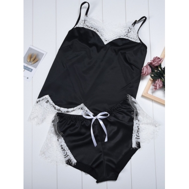 Lovely Home Style Lace Patchwork Black Sleepwear