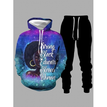 Lovely Casual Starry Sky Letter Print Patchwork Black Men Two Piece Pants Set