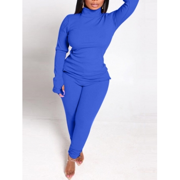 Lovely Casual O Neck Letter Print Blue Plus Size Two-piece Pants Set