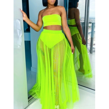 Lovely Sweet Strapless See-through Green Plus Size Two-piece Swimsuit