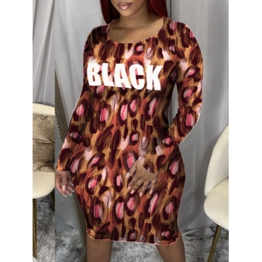 Lovely Street Letter Leopard Print Patchwork Knee Length Dress