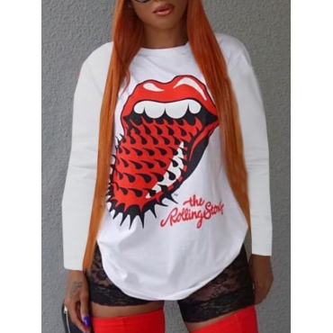 Lovely Casual Lip Letter Print Patchwork White T-shirt