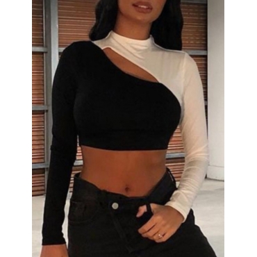 Lovely Casual Hollow-out Color-lump Patchwork Black T-shirt
