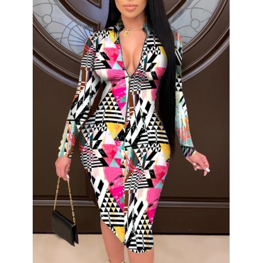 Lovely Abstract Geometry Sweet Geometric Print Patchwork Multicolor Knee Length Dress