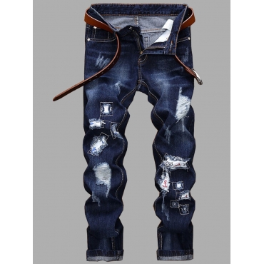 Lovely Casual Mid Waist Broken Holes Blue Men Jeans