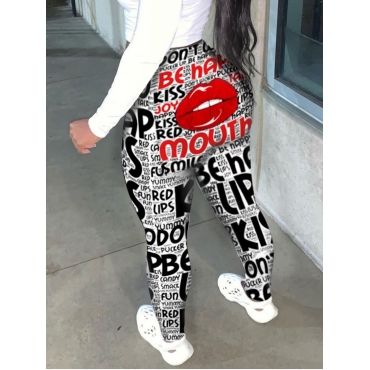 Lovely Red Lip Serie Casual Lip Letter Print Black Pants