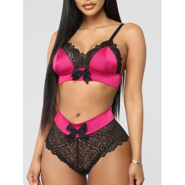 Lovely Sexy Bow-tie Decoration Patchwork Rose Red Bra Sets