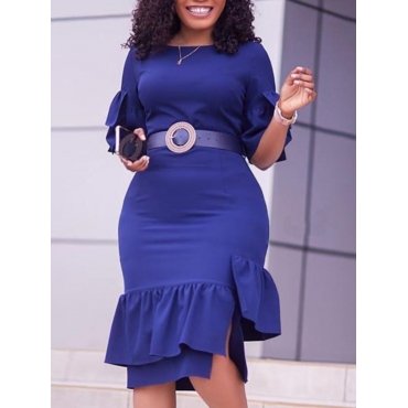 Lovely Formal Layered Cascading Ruffle Design Blue Plus Size Knee Length Dress