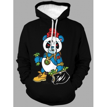Lovely Trendy Cartoon Print Patchwork Black Men Hoodie