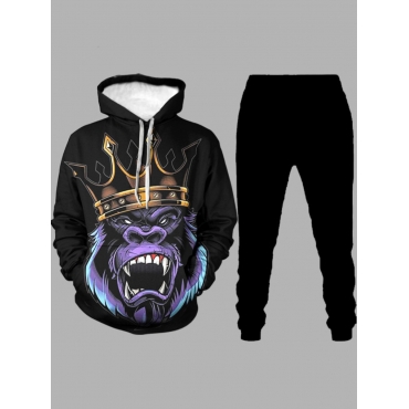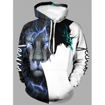 Lovely Street Lion Print Patchwork Black Men Hoodie