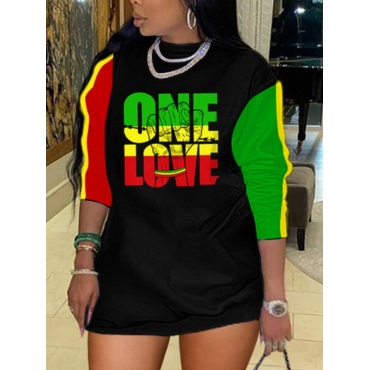 Lovely Casual O Neck Color-Block Patchwork Print Multicolor Plus Size Dress