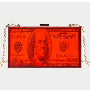 Lovely Street Dollar Print Chain Strap Red Crossbody Bag