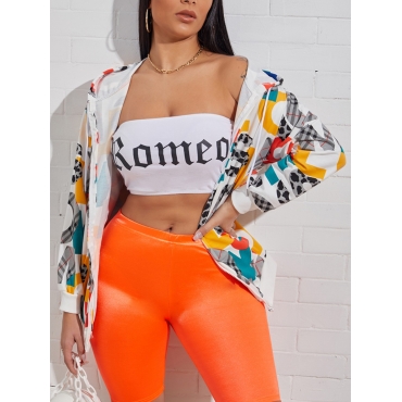 Lovely Street Hooded Collar Letter Print White Hoodie Outerwear