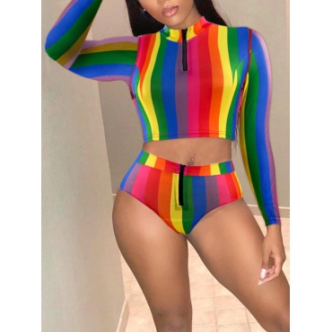 Lovely Bohemian Striped Patchwork Multicolor Tankini