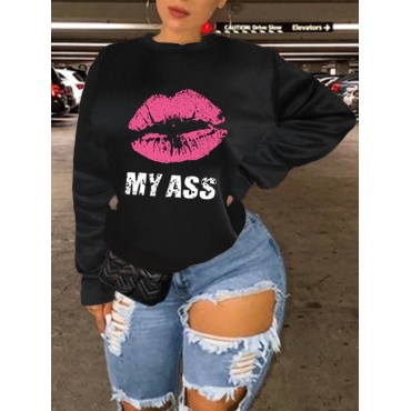 Lovely Street Lip Letter Print Loose Black Plus Size Hoodie