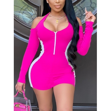 Lovely Sportswear Patchwork Hollow-out Rose Red Mini Dress