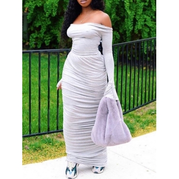 Lovely Sweet Bateau Neck Fold Design Grey Floor Length A Line Dress