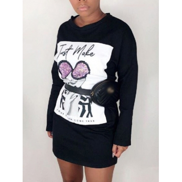 Lovely Casual Portrait Letter Print Patchwork Black Mini Dress(Without Bag)