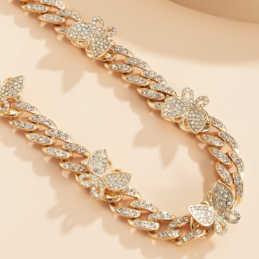 Lovely Party Sequined Butterfly Gold Necklace
