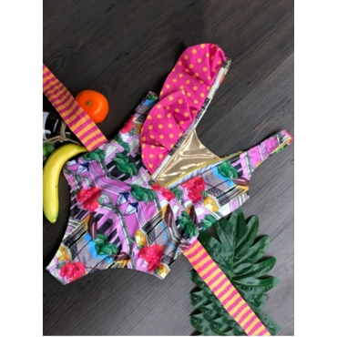Lovely Sweet Flounce Design Bow-tie Decoration Patchwork Rose Red One-piece Swimsuit