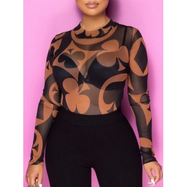 Lovely Casual Floral Print See-through Coffee Base Layer