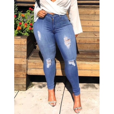 Lovely Street Broken Holes Raw Edge Deep Blue Jeans