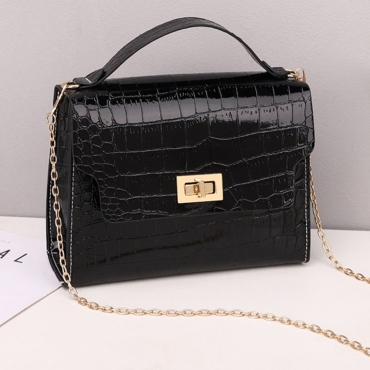 Lovely Casual Plaid Print Patchwork Black PU Crossbody Bag