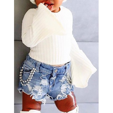 Lovely Casual O Neck Flare Sleeve White Girl Two Piece Shorts Set